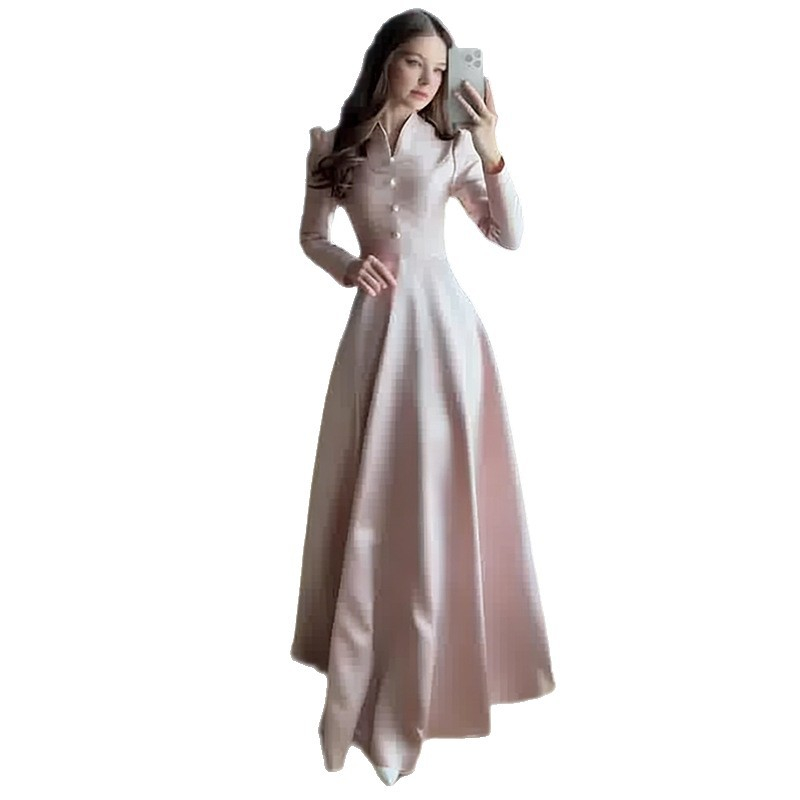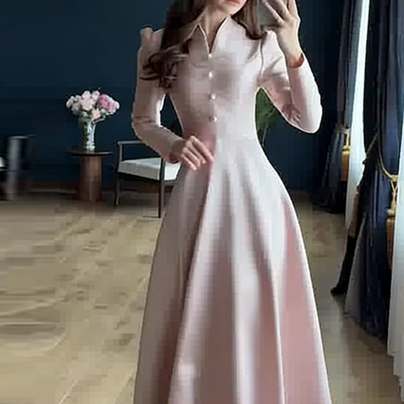 New Womens Waist-cinching V-neck Long-sleeve Minimalist Maxi Dress